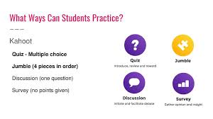 3 how to use kahoot answers? .kahoot quiz which aims to scaffold questions with increasing difficulty and links between the different questions that by answering previous questions correctly and discussing that correct. All participants have to take the quiz at the same time. Kahoot has two websites one for the teacher to form test and second for students to follow up test. This helps you search millions of questions in.